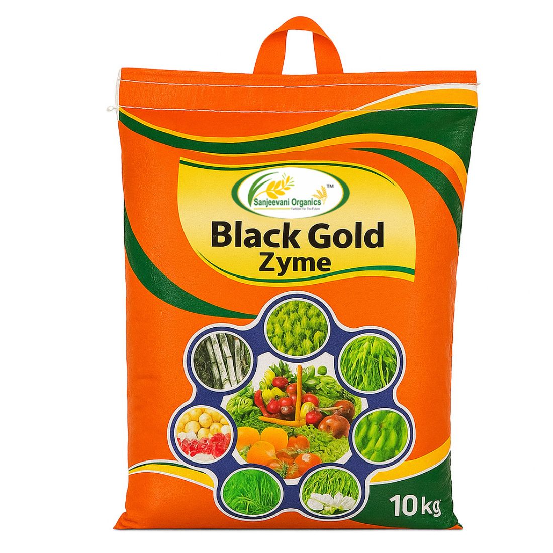 Sanjeevani Organic Black Gold Zyme is a premium organic soil conditioner enriched with natural enzymes and beneficial microbes that improve soil health and boost crop productivity. Packed in a convenient 10 Kg bag, it helps convert organic matter into plant-available nutrients, making soil more fertile and crops healthier.