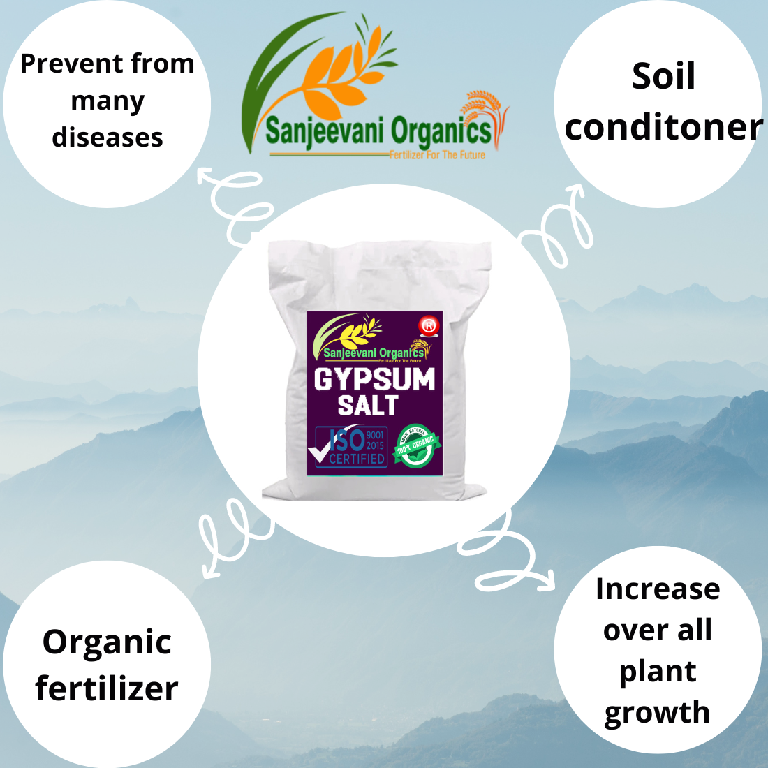 Sanjeevani Organics Gypsum Powder is a natural soil conditioner made from high-quality calcium sulphate, specially used to improve soil structure, reduce salinity, and support healthy root development. It provides essential calcium and sulphur to plants while improving water penetration and nutrient availability in the soil, making it ideal for home gardens, nurseries, and agricultural fields.