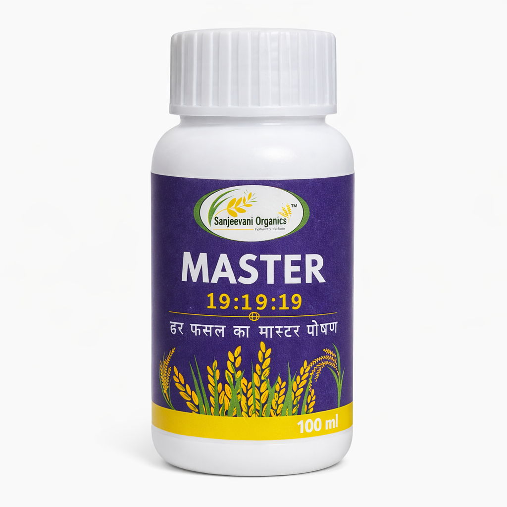 Sanjeevani Organic Master NPK 19:19:19 Liquid Fertilizer is a premium, balanced plant nutrient solution specially formulated to support healthy plant growth, strong roots, and higher crop yields. With equal proportions of Nitrogen (N), Phosphorus (P), and Potassium (K), this liquid fertilizer ensures complete and balanced nutrition for all types of crops and plants.