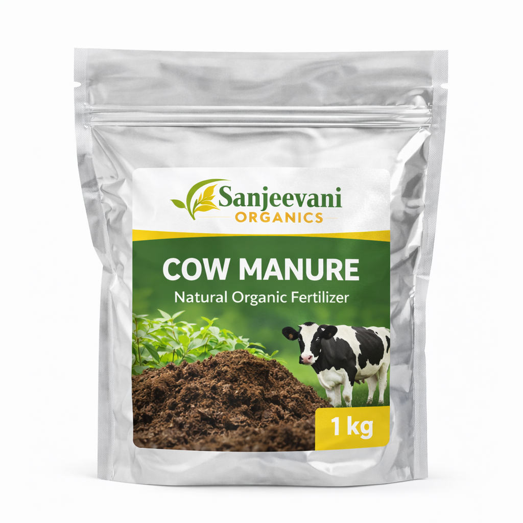 Sanjeevani Organics Cow Manure is a premium quality, well-decomposed organic fertilizer that enriches soil naturally and improves long-term fertility. Made from pure cow dung and processed under controlled conditions, it enhances soil structure, increases microbial activity, and supports healthy root development for all types of plants.