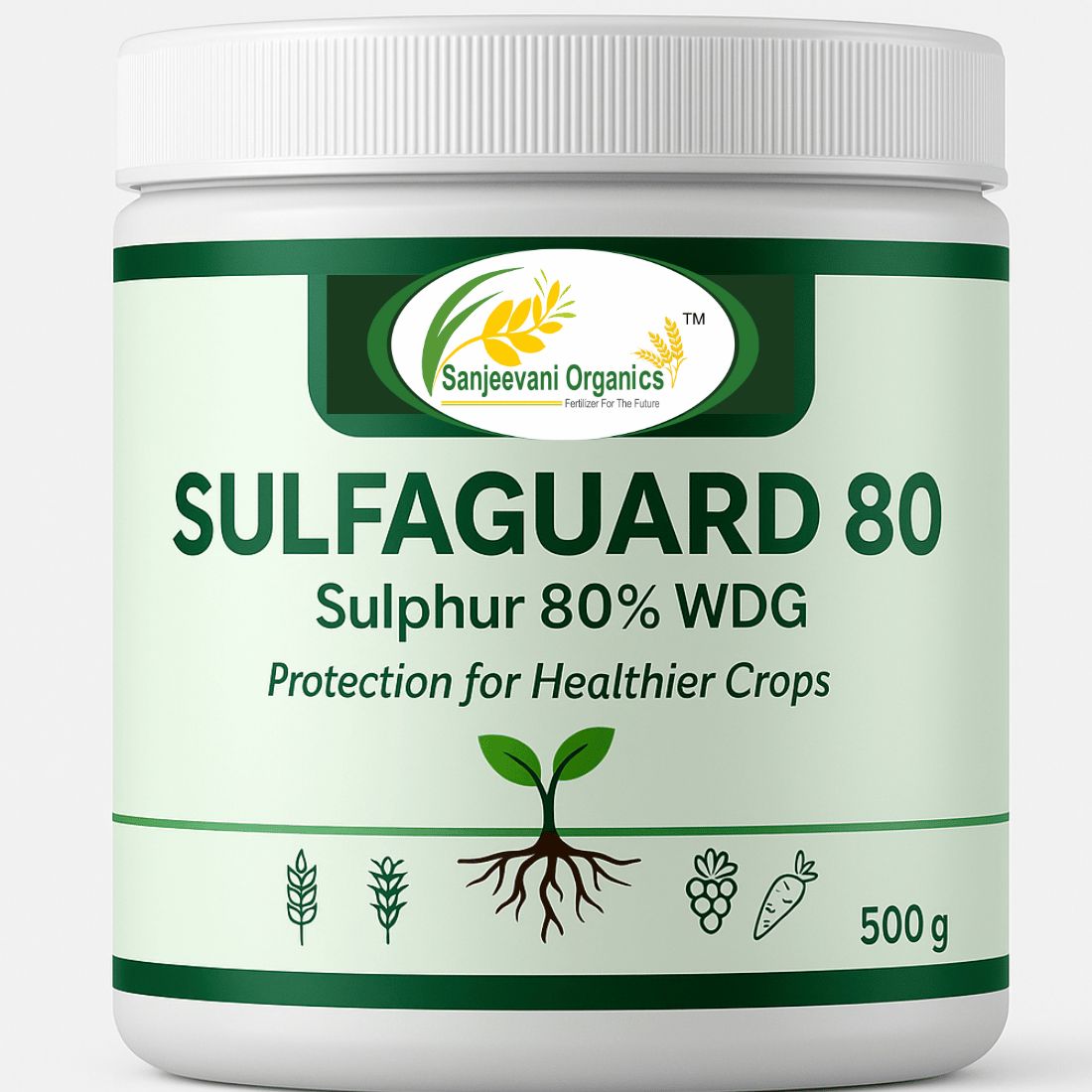 Sanjeevani Sulfa-Guard 80% Powder is a sulfur-based fungicide and nutrient that controls fungal diseases and boosts plant health naturally.
