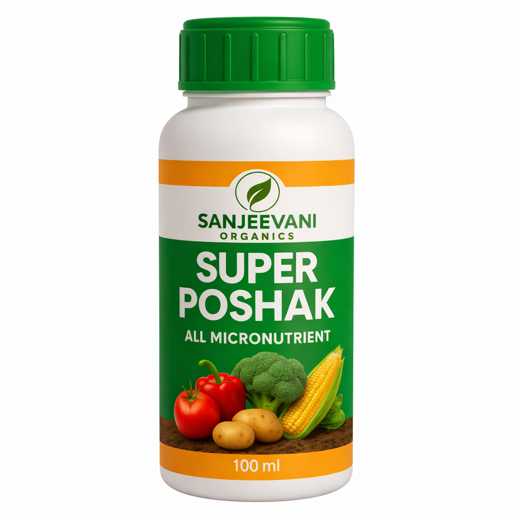 Sanjeevani Organics Super Poshak is a premium plant growth promoter designed to provide balanced nutrition for healthy roots, strong stems, and faster plant development. Enriched with essential nutrients and organic ingredients, it improves soil fertility and boosts crop productivity naturally.